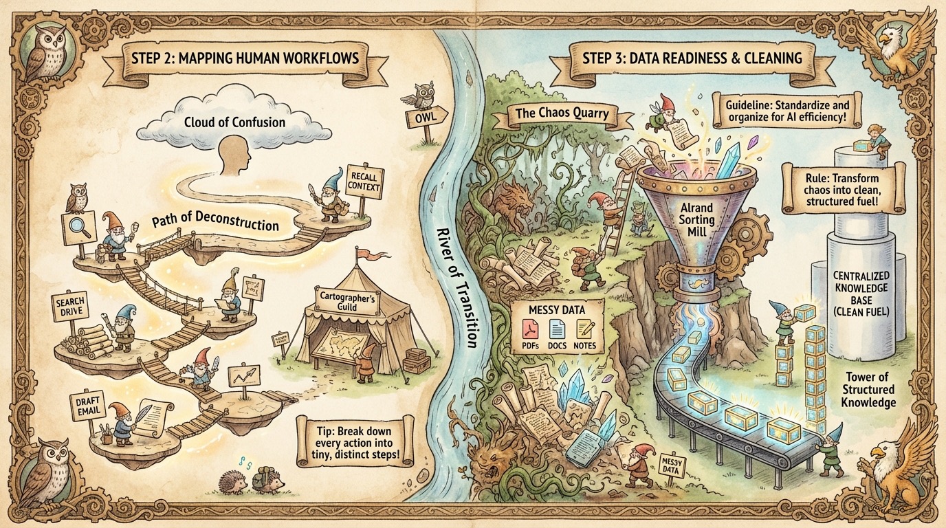 You have identified the high impact areas in your sales process. You know exactly which bottleneck you want to fix first. Now you might feel the urge to immediately start writing prompts or buying software. You must resist this urge. Automating sales process with AI fails when leaders skip the foundational work of mapping workflows and preparing data.