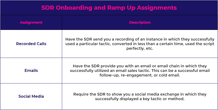 SDR onboarding is a sizable and involved process, so let’s break it down into the action steps: