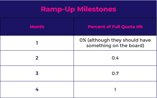 So basically, by the end of month 4, your SDRs should be hitting 100% of their quota. If it’s consistently taking new SDRs longer, there’s probably something that can be improved in your onboarding process.
