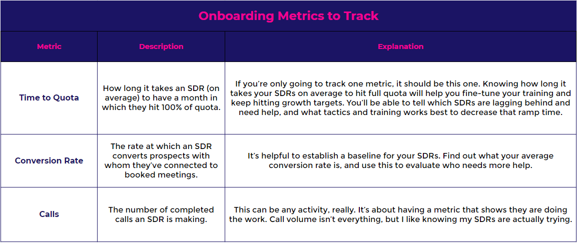 There are 3 keys to efficient and effective SDR onboarding, which form the foundation of my onboarding plan: